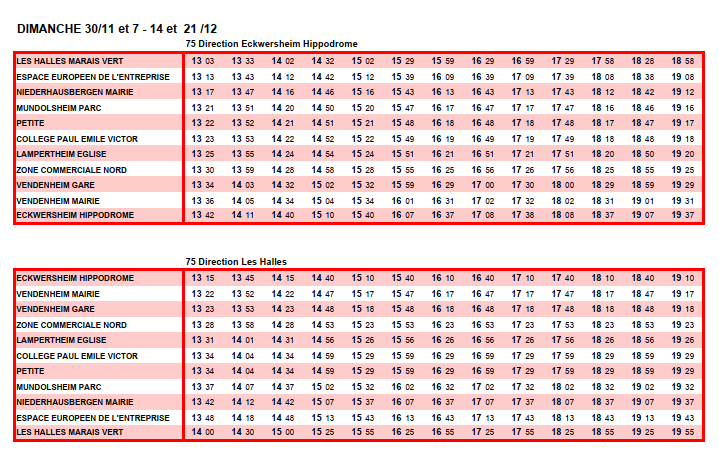 - Les dimanches 30 novembre, 7, 14 et 21 décembre, un tram toutes les 10 minutes de 11h à 21h sur les lignes A-B-C-D et F